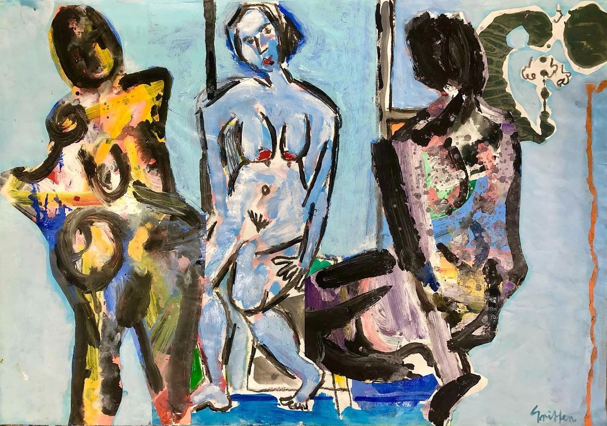 "Nude with Blue Coffee Table" acrylic on paper 59x42cm